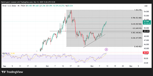 Hopea nousee korkeammalle ja testaa nyt avainvastusta 51,6 dollarissa. 50,9 dollarin tuki voi nostaa hinnat 52,46 dollariin tai jopa 54,37 dollariin.