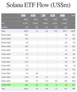 17 raka dagar med positiva inflöden till Solana-ETF:er